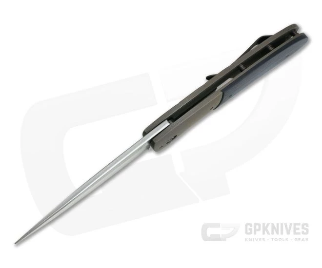 Aaron Frederick’s custom Charone flipper is a robust, tactical everyday carry folder that offers Aaron’s signature style in a sleek, utilitarian design. Premium materials and exceptional craftsmanship are the cornerstones of this custom folder. This piece has a blasted and tumbled CPM-154 blade, bronze anodized titanium frame lock construction with matching bolster, liner and clip, blue/black G10 scale and Steve Kelley Custom Titanium hardware.