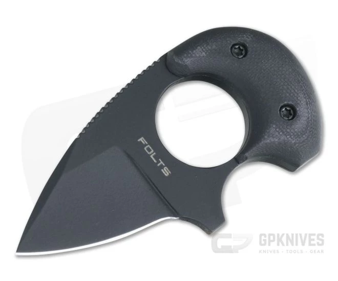 Handle: Smooth and contoured matte black G10 handle scales are attached via black Torx screw hardware for an overall stealth look paired with the black coated blade. The single finger ring hole is very secure and comfortable in the hand.