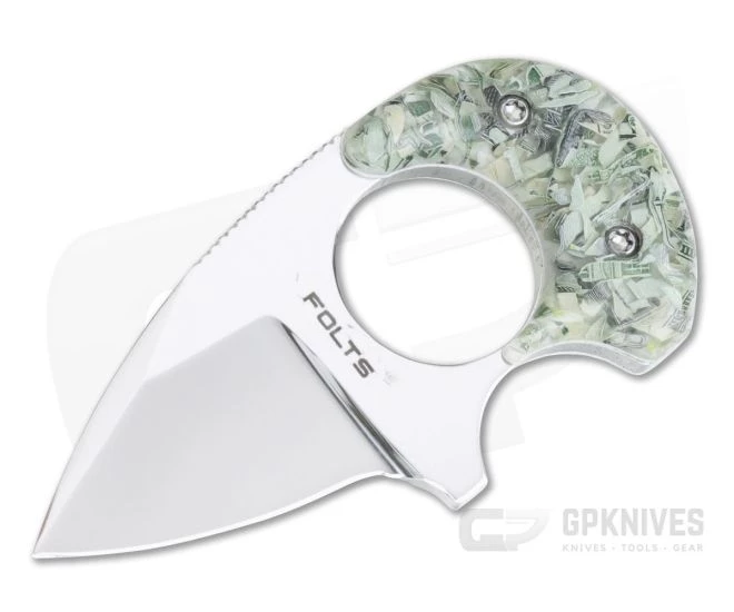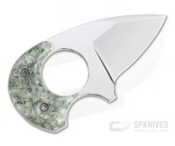 The elusive Baby Bear from Alan Folts is back and as good as ever. This ultra compact ring knife makes a perfect every day carry fixed blade and excels in both utility and defensive tasks. This version comes with a polished CPM-154 blade and Kipps Custom Cash Acrylic handles along with a custom leather belt sheath.