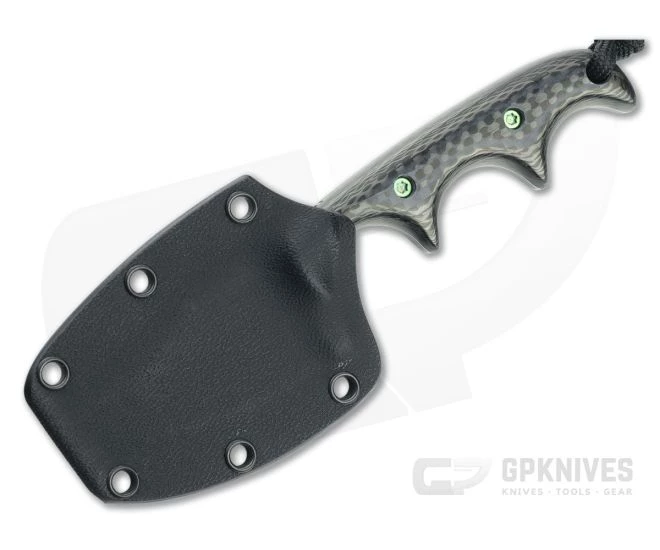 Alan Folts Custom Minimalist is a small everyday carry fixed blade made for maximum function with minimal size. The lightweight, well-balanced design has a small footprint, making it a perfect choice for discreet everyday carry. This version comes with carbon fiber scales, green anodized titanium hardware and a tumbled CPM-154 Bowie blade.