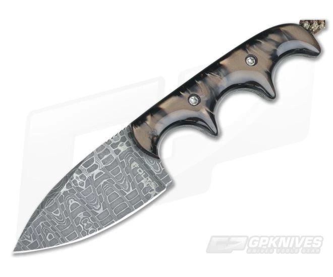 Handle: Three deep finger grooves and attached lanyard create a secure and ergonomic grip. The addition of the lanyard extends the 3-finger grip to fill most hands. Smooth and contoured Brown Pearl Kirinite acrylic handle scales are attached via Torx screw hardware.