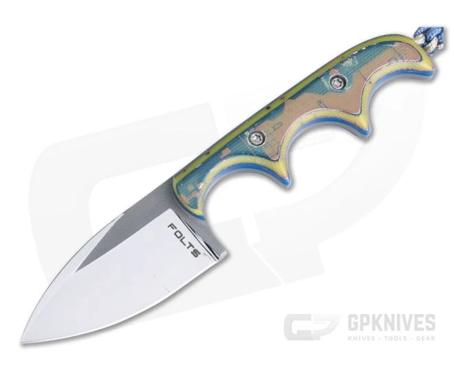 Alan Folts Custom Minimalist Spear Point is a small everyday carry fixed blade made to be minimal in size (hence the name) while offering maximum function. The lightweight, well-balanced design doesn’t take up much space making it a perfect choice for discreet every day carry. This version comes with smooth, polished Circuit Board G10 handles and a two-tone Polished CPM-154 blade.