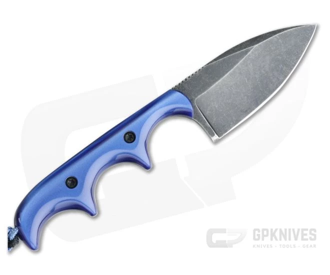 Alan Folts Custom Minimalist Spear Point is a small everyday carry fixed blade made to be minimal in size (hence the name) while offering maximum function. The lightweight, well-balanced design doesn’t take up much space making it a perfect choice for discreet every day carry. This version comes with polished Pearl Blue Kirinite acrylic handles and a Black Washed CPM-154 blade.