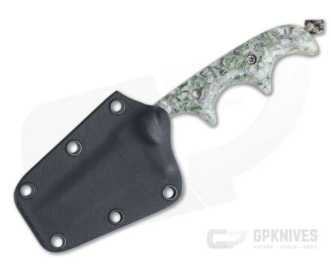 Alan Folts Custom Minimalist Tanto is a small everyday carry fixed blade made to be minimal in size (hence the name) while offering maximum function. The lightweight, well-balanced design doesn’t take up much space making it a perfect choice for discreet every day carry. This version comes with a polished two-tone, CPM-154 Tanto blade and “Cash” Custom Acrylic handles.