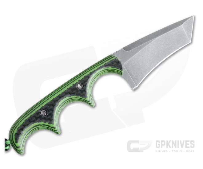 Alan Folts Custom Minimalist Tanto is a small everyday carry fixed blade made to be minimal in size (hence the name) while offering maximum function. The lightweight, well-balanced design doesn’t take up much space making it a perfect choice for discreet every day carry. This version comes with a tumbled, CPM-154 Tanto blade and Carbon Fiber/Green G10 Hybrid handles.