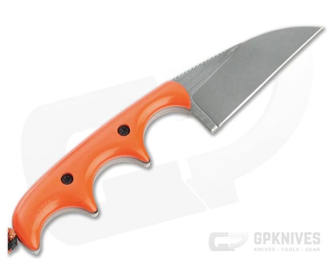 Alan Folts Custom Minimalist is a small everyday carry fixed blade made for maximum function with minimal size. The lightweight, well-balanced design has a small footprint, making it a perfect choice for discreet everyday carry. This version comes with polished orange G10 scales over orange and black liners and a tumbled CPM-154 Wharncliffe blade.