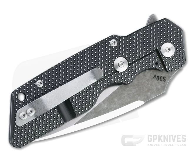 Blade: The S30V Tanto blade comes with a rising hollow grind and long spine swedge delivering amazing slicing and piercing power with solid durability. The Tanto is great a piercing powerhouse and works well for flat surface utility cutting. Grinds are bright satin contrasted by blackwashed flats and spine for a handsome two-tone look. Index flipper deployment is fast and smooth thanks to a ceramic bearing pivot.