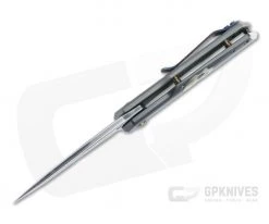 Handle: Dual handle slabs are contoured for a comfortable and secure grip with dual finger grooves and an iconic thumb scoop. Offering good heft in the hand and visual appeal, the front scale is made from polished zirconium with an eye catching Moku-Ti skull inlay. Discreet and practical, the rear slab is blasted matte gray and cut with an integral frame lock that is smooth and easy to operate, delivering rock solid lockup for safe use. Flamed titanium hardware and clip round out the build.