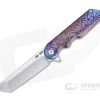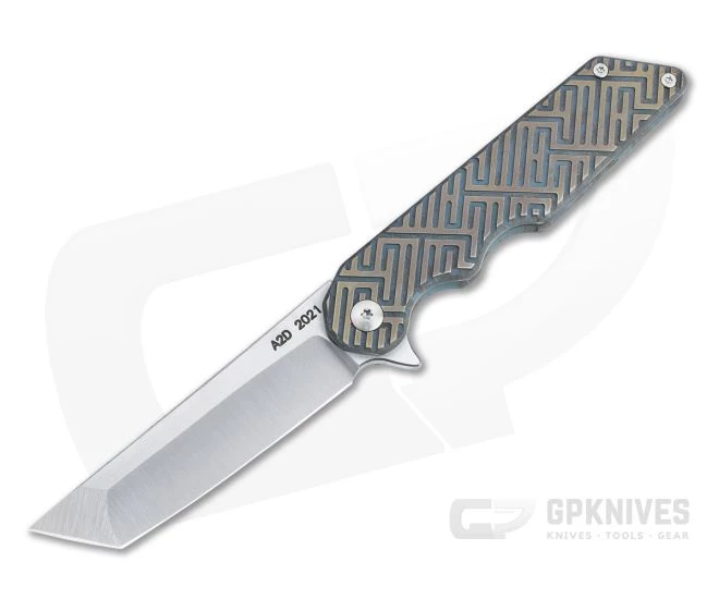 The Attn2Detail Tanto Folder is a large tactical frame lock folder with a streamlined design and stout build quality. Thick contoured slabs form a large and comfortable handle with dual index grooves for a secure grip. The American style Tanto is compound ground for optimal performance whatever the tasks. This version has a satin finished CPM-3V blade and anodized titanium handle slabs with “Oriental” milled texture.
