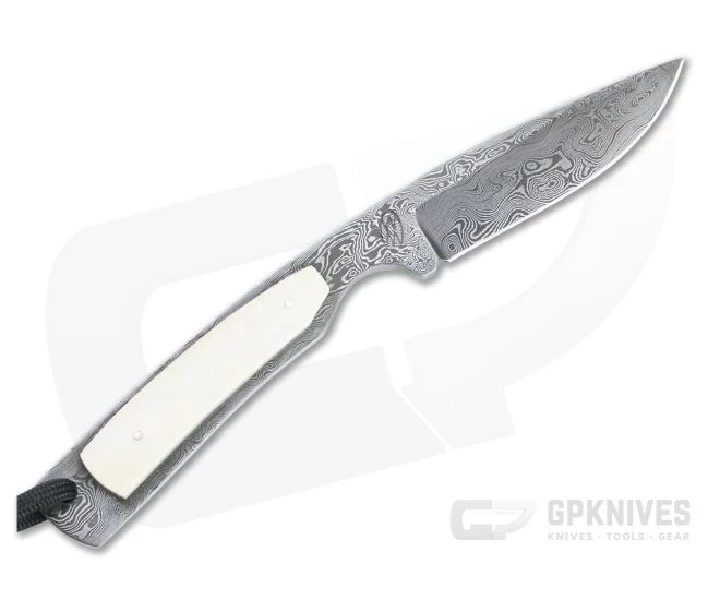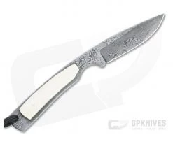 Renowned for his stunning custom Damascus fixed blade hunters and fighters, Bill Miller A.K.A. WM Knives makes heirloom quality knives with timeless designs featuring hand forged Damascus blades. Elevating the visual appeal further, the knives feature elegant natural material handles, polished fittings and exotic leather and hide sheaths. This full tang “half naked” custom bird and trout knife has a carbon Damascus drop point blade and fossilized walrus ivory handle scales.