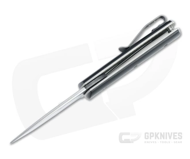 The Custom Brad Zinker Drop Point Shorty LLF is a diminutive daily carry folder sporting an ultralight liner lock construction. Custom-made by hand with precision fit and finish and premium materials, the Shorty is a stylish daily carry that blends modern style with traditional design. This version comes with a stonewashed CPM-154 drop point blade, jeweled titanium liners and black paper Micarta scales.