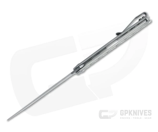 The Custom Brad Zinker Persian FLF takes his iconic ultralight frame lock construction and delivers it in an ultra-slim, ultralight flipper with precision hand fit and finish with a long, sweeping, up swept Persian blade. This version comes with a dark stonewashed CPM-154 blade and matching titanium handle slabs with hole milling.