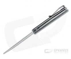 Handle: Contoured marbled carbon fiber scales form a visually appealing and comfortable handle with 3.5 inches of grip area. Scales are attached via Torx hardware to the engine turned jeweled solid titanium liners in an easy to maintain open construction with a single barrel spacer. A subtle cutout allows access to the jimped titanium liner lock that delivers smooth operation, secure lockup and safe use. Includes padded zipper pouch for storage.