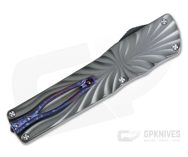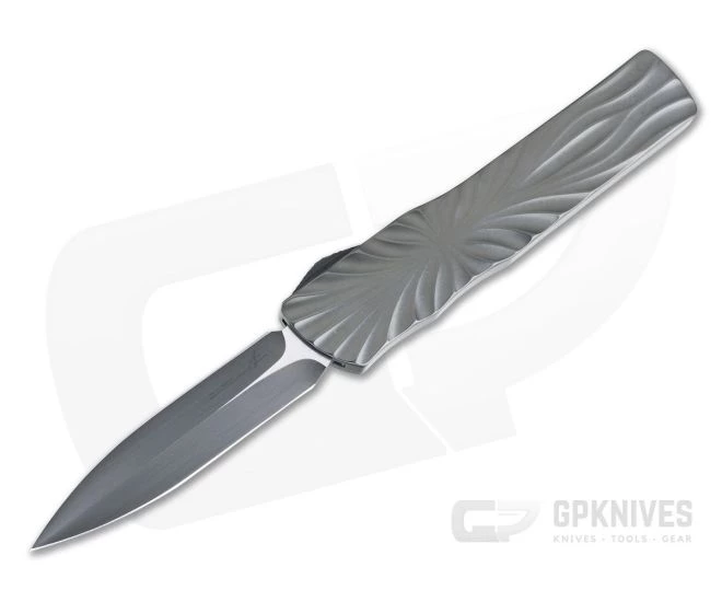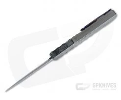 Brian Tighe Custom Twist Tighe is a full sized, double action, out the front, automatic knife with Brian’s signature look and feel with custom construction and attention to detail. This large OTF has a striking, 3D machined titanium handle milled in Brian Tighe’s signature style. This piece comes with a satin DLC coated RWL-34 blade with a hand ground double edge and Ceramic Charcoal titanium handle with ruby ball Timascus clip.