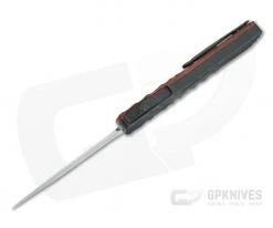 Blade: The sleek, hollow ground, Dagger blade provides powerful piercing and slicing performance with premium BG-42 stainless steel construction. A hand rubbed, horizontal satin finish is complemented by the dual hollow grind for a stunning look that fits with the style of this high level custom piece. Deploying via a stepped carbon fiber slide, the double action is fast and smooth for lightening quick deployment and retraction.