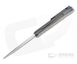 Handle: Matte blasted and anodized bronze, the streamlined titanium handle is chamfered for a comfortable, secure grip that is easy to carry. Blue anodized pivot collars, back spacer and pocket clip offer a subtle color contrast while milled grooves enhance traction. The robust integral titanium Slab Frame Lock is equipped with a hardened steel lock face insert for smooth operation, rock solid lockup and secure operation for the life of the knife. Ships in a zippered nylon pouch with Certificate of Authenticity.