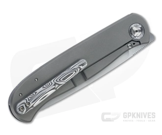 Burger Custom Atlas SFL Drop Point Satin M390 Damasteel Gray Frame Lock Front Flipper 4566
