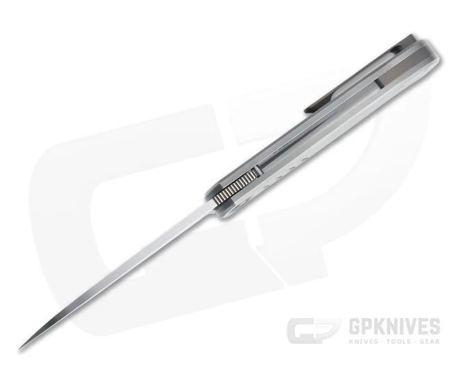 Handle: Blasted matte gray, the streamlined titanium handle is chamfered for a comfortable, secure grip that is easy to carry. Bronze anodized pivot collars, back spacer and pocket clip offer a subtle color contrast while milled grooves enhance traction. The robust integral titanium Slab Frame Lock is equipped with a hardened steel lock face insert for smooth operation, rock solid lockup and secure operation for the life of the knife. Ships in a zippered nylon pouch with Certificate of Authenticity.