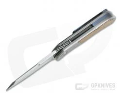 Handle: The rugged integral titanium Slab Frame Lock is equipped with a hardened steel lock face insert for smooth operation, rock solid lockup and secure operation for the life of the knife. Blue anodized pivot collars, floating back spacer and pocket clip add a touch of color giving it a classy look. The handle slabs are lightly contoured and are bead blasted for a matte gray finish and subtle texture. The front is inlaid with handsome natural Micarta for visual appeal. Ships in a zippered nylon pouch.