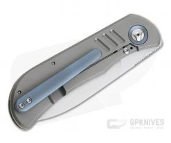 Handle: Full titanium construction makes the SFL a more rugged folder while the blue anodized pivot collars, floating back spacer and pocket clip add a touch of color giving it a classy look. The handle slabs are lightly contoured and are bead blasted for a matte gray finish and subtle texture. The integral titanium frame lock with hardened steel lock face insert delivers smooth operation, rock solid lockup and secure operation for the life of the knife. Ships in a zippered nylon pouch with Certificate of Authenticity.