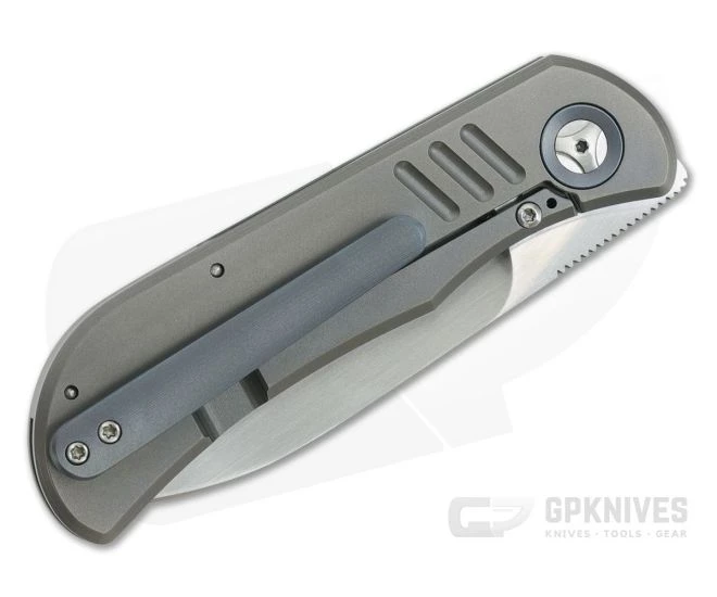 Handle: Full titanium construction makes the SFL a more rugged folder while the blue anodized pivot collars, floating back spacer and pocket clip add a touch of color giving it a classy look. The handle slabs are lightly contoured and are bead blasted for a matte gray finish and subtle texture. The integral titanium frame lock with hardened steel lock face insert delivers smooth operation, rock solid lockup and secure operation for the life of the knife. Ships in a zippered nylon pouch with Certificate of Authenticity.