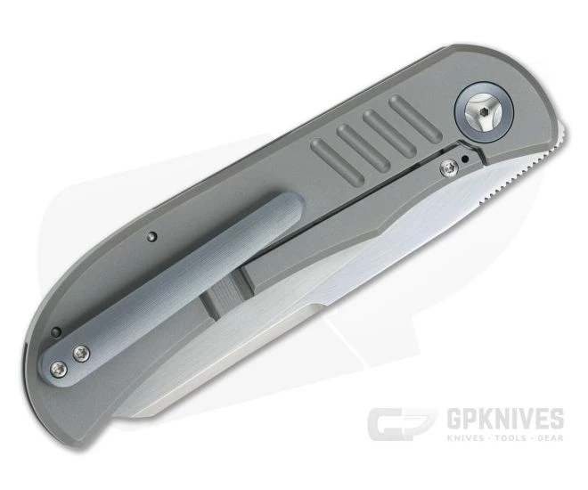 Handle: Full titanium construction makes the SFL a more rugged folder while the blue anodized pivot collars, floating back spacer and pocket clip add a touch of color giving it a classy look. The handle slabs are lightly contoured and are bead blasted for a matte gray finish and subtle texture. The integral titanium frame lock with hardened steel lock face insert delivers smooth operation, rock solid lockup and secure operation for the life of the knife. Ships in a zippered nylon pouch with Certificate of Authenticity.