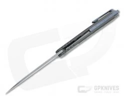 Handle: Blasted matte dark gray titanium slabs are internally milled for weight reduction forming a slim yet substantial handle. The ergonomic design is enhanced by chamfered edges for comfort with a deep index choil and jimping near the pivot. The integral frame lock comes with a hardened steel lock face for smooth operation, solid lockup and secure operation for the life of the knife. LVA (Low Void Aerospace) carbon fiber inlays and blue titanium hardware, clip and back spacer reduce weight while adding style. Ships in a zippered nylon pouch with Certificate of Authenticity.