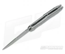 The Burger Knives Custom Sierra Frame Lock Flipper combines a tactical appearance, assertive ultra smooth function and stout build with custom fit and finishing. Long and slender, the Sierra Titanium Frame Lock offers an incredibly comfortable in hand feel with just enough ergonomics. Very sleek and modern while maintaining practicality, this easy to maneuver folder can cover all bases from collector to EDC to tactical applications. Includes a signed certificate of origin and black nylon zipper pouch. Brand new directly from Trevor Burger.