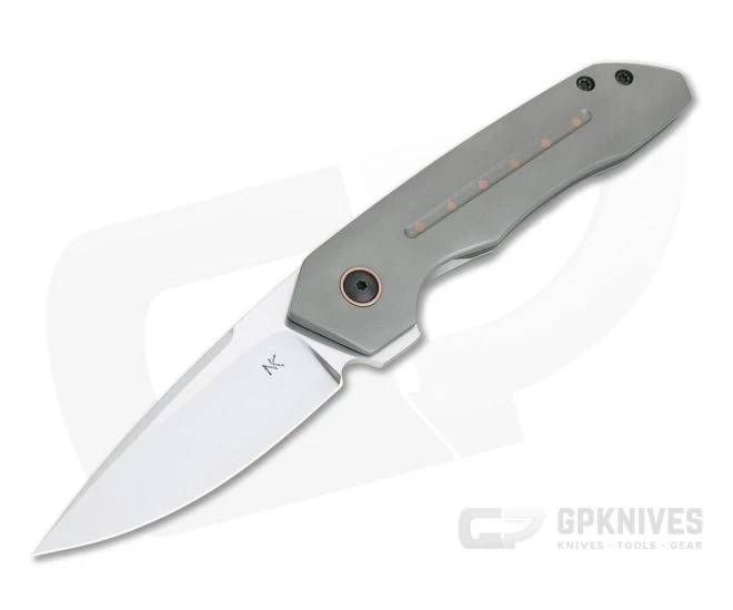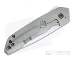 The Chad Nell Custom Gent is a clean and utilitarian design that is well adapted to dress and every day carry. This is a robust, titanium frame lock flipper that doesn’t sacrifice function for style and has both in spades. This version has a hand rubbed satin finished, AEB-L stainless steel blade, milled and contoured titanium handles and pocket clip with copper back spacer, pivot collar rings and dot inlays.