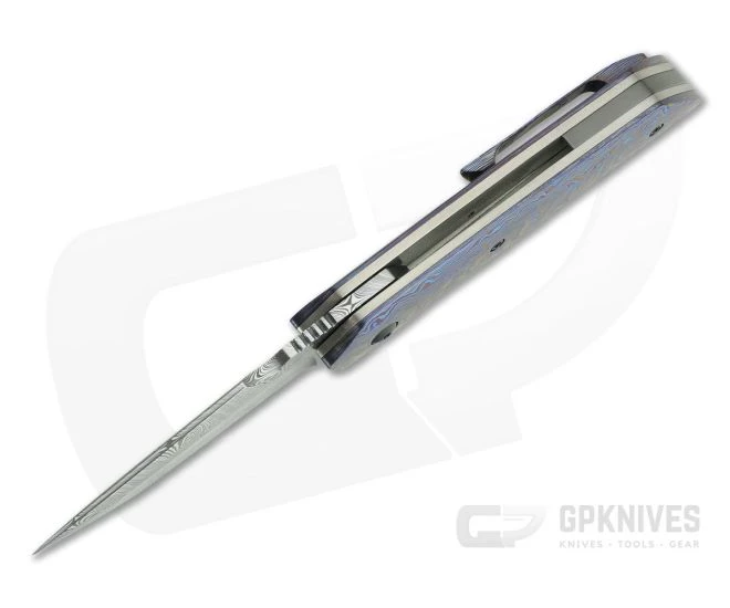 Blade: This is the first ever Chad Nell custom with a Damasteel blade and it looks fantastic. The Gent UDT has a harpoon-style Tanto profile with clean lines that highlight the visually striking blade material. Jimping at the spine provides traction while the compound grind (flat tip and hollow primary edge) deliver and excellent balance of performance if you choose to use this custom showpiece. The blade rides on a caged bearing pivot and deploys via the flipper tab with exceptional smoothness and speed thanks to the dialed in detent.