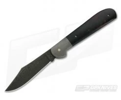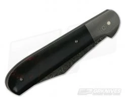The Chuck Hawes Custom Copperhead is a classic slip joint design made in the traditional fashion. Handsome, Dark Stabilized Maple handle scales are flush fit to Damascus bolsters on stainless steel liners for a classic appearance. The handles house a single hand forged Burl Damascus blade.
