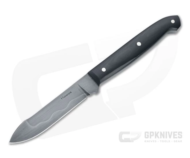 Custom knife maker Chuck Hawes is renowned for high quality fixed blade knives as well as his singular traditional slip joint folders. This custom Harpoon Trapper has a blade of W2 tool steel with an eye-catching Hamon line and polished double black linen Micarta scales. A striking piece for any collection, this knife makes an ideal daily carry fixed blade or outdoor cutting tool.