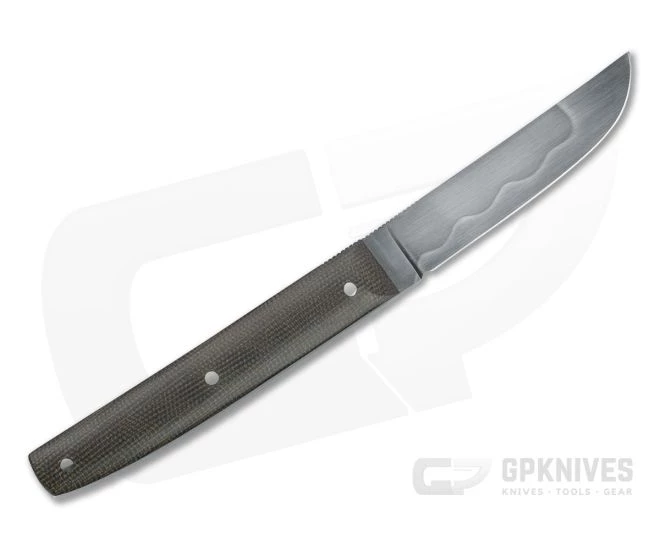 Handle: Stainless pins solidly secure the comfortably contoured, polished green canvas Micarta handles to the full tang. Offering a clean, handsome look with visual appeal for collectors, the handles are durable and well-designed for serious use with a taper to the pommel that offers a surprisingly secure grip while retaining speed in the hand.
