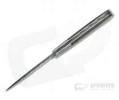 Blade: Â The Remington-style drop point Skinner is opened with a single nail nick and comes with a razor sharp convex grind. File work along the length of the spine adds traction and a custom feel along with the Hamon line on the W2 tool steel. Opening is smooth with a solid half stop and a moderate back spring strength.