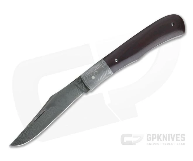 Blade: Hawes hand forged Damascus combines 180 layers of 1080, 5160 and 15n20 high carbon steels creating a unique Burl pattern. The classic Trapper clip point blade is opened with a single nail nick from the front and comes with a razor sharp convex grind. File work along the length of the spine of the blade adds traction and a custom feel. Opening is smooth with a solid half stop and a moderate back spring strength.