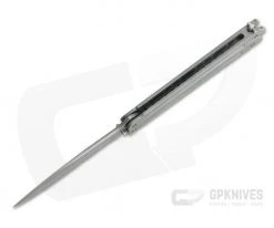 Handle: The handles of the Continuum are marvelous. The handles are channel milled from billets of titanium for a minimalist integral construction. Weight reduction is one thing, but the grip it adds provides plenty of traction for cycling and use. Nothing unnecessary is added keeping this knife perfectly balanced in weight. The handles have been finished with a beautiful orange peel texture that offers a nice, tactile feel. A hammer textured titanium latch and pin keep the handle securely open or closed for use or carry respectively.