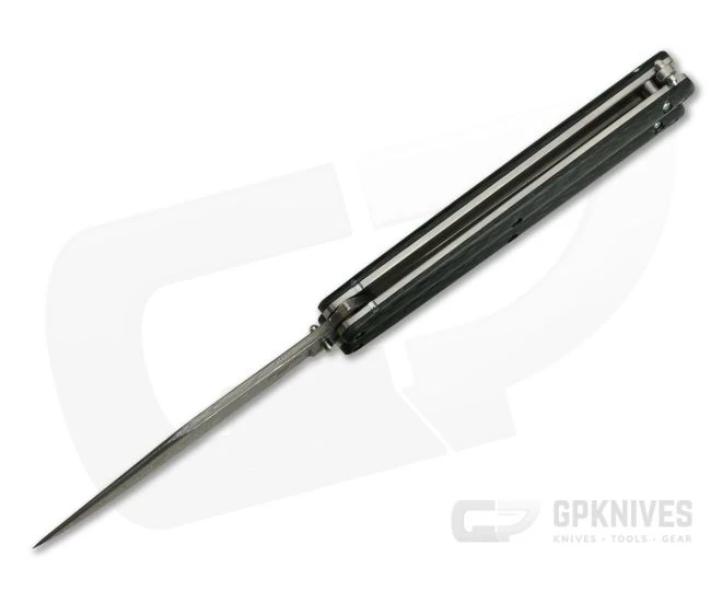 This custom balisong from maker Craig Camerer is a stunner! You can feel the craftsmanship and hard work Craig put into this piece as soon as you pick it up. The clip point blade is made from his custom Camerer Carbon Damascus steel paired with beautiful Green Glow Carbon Fiber. This is a refined piece for the user or collector.