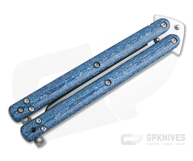 This custom balisong from maker Craig Camerer is a stunner! You can feel the craftsmanship and hard work Craig put into this piece as soon as you pick it up. Beautifully satin finished, the clip point blade is made from premium Bohler Elmax stainless steel paired with unbelievably eye catching Blue Geodesic Micarta handle scales. This is a refined piece for the user or collector alike.