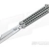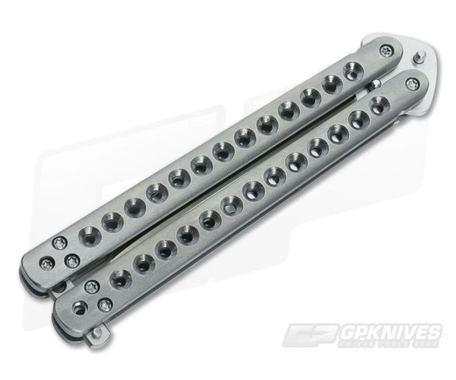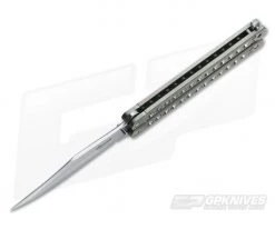 The Handle: Milled of titanium, the handle has been expertly machined and orange peel anodized for a classic look. Barrel spacer construction gives the butterfly a clean appearance as well as a solid build. Titanium latch for reliable lock up.