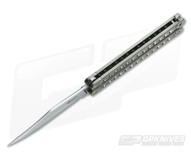 Craig Camerer Custom Balisong featuring milled titanium handles and Elmax blade in a very traditional styling. At about 4.5 ounces, it offers a nice weight for cycling while also maintaining a pocket friendly feel. Brand new directly from Craig Camerer.