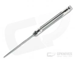 Handle: Full length titanium handles are fit with carbon fiber inlays dovetailed and fixed with stainless pins for a striking look. Open pillar construction gives the handles good balance and makes for easy cleaning and maintenance The titanium has a brushed finish inside and out with a robust textured titanium latch securing the handle in both open or closed positions.