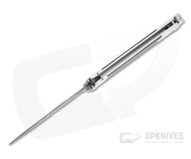 Blade: Craig crafted this beautiful recurve blade using a stunning custom Twisted “W” pattern carbon Damascus for modern performance and style. A long false edge swedge and deep hollow grind offer sold performance if you can bring yourself to use it while bearing pivots provide flawless operation.