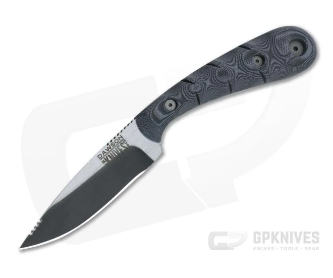 A sized up version of the Angler, the Dawson Serengeti is a versatile EDC fixed blade that easily handles hunting and outdoor field tasks while being a breeze to carry. Dawson utilizes American-made, CPM 3V powder metallurgy steel which offers exceptional toughness with edge holding up to three times longer than D2 and a clear Cerakote coating for corrosion resistance. This version comes with pewter gray and black G10 handle scales and a two-tone Specter finish blade.