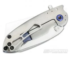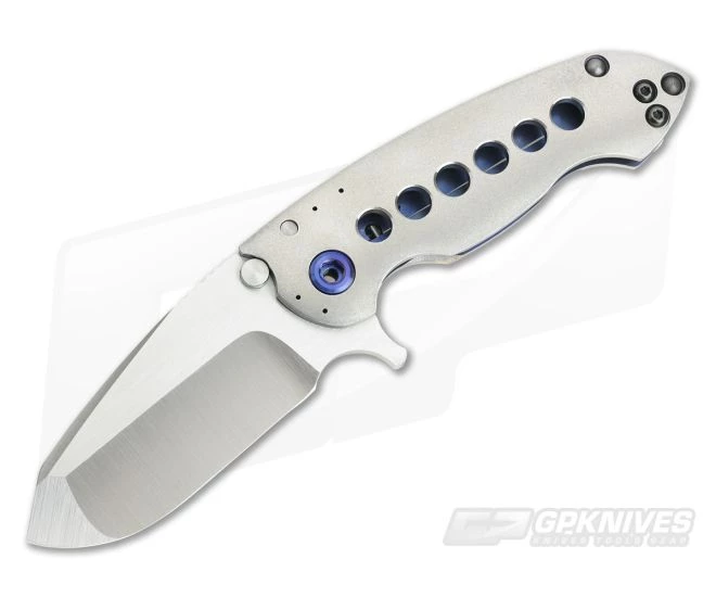 The Handle: Thick, contoured titanium forms the framework for the SOLO and is finished with a beautiful Orange Peel texture and milled hole pattern with satin chamfering. Comes standard with a robust, 3D machined titanium clip for tip-up, right or left hand carry. The integral frame lock mechanism is flawless in operation and offers unparalleled reliability. Construction is completed with Blue anodized Titanium spool standoffs and oversize, chain ring bolt pivot.