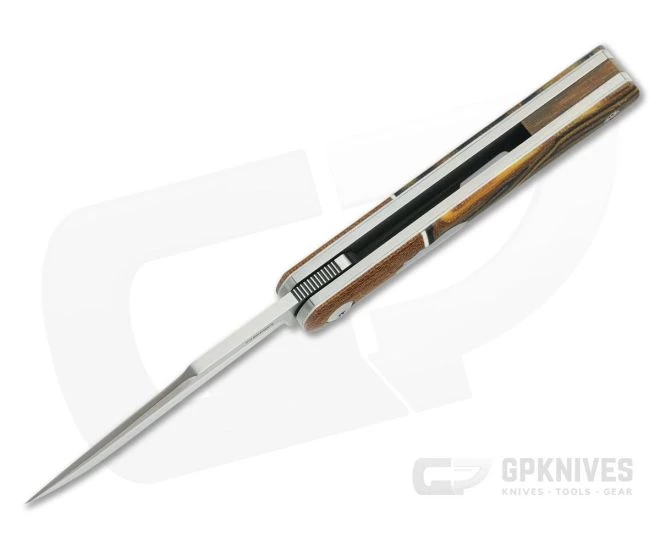 Enrique Pena is known for his remarkable fit, finish and function as well as the blending of traditional and tactical in his designs. This Pena Custom Barlow Front Flipper is no exception. The hand rubbed satin finished CPM-154 blade is razor sharp, perfectly centered and super smooth with a modern, titanium liner construction. The handles call back to the old time slip joints but are made with handsome Micarta composite: natural crosscut canvas bolsters and custom “Neck of the Woods” ripplecut G-Carta from G.L. Hansen & Sons for the scales with contrasting white liners and a satin finished shield.