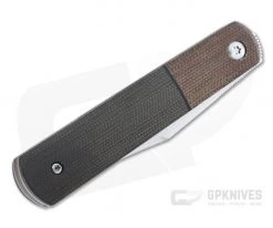 Handle: Modern and clean in form and function, the frame of the handle is formed by two thick satin finished titanium liners. One of these liners also forms the liner locking mechanism which provides solid, secure lock up along with smooth operation. Giving the Barlow a timeless appearance, the scales and back spacer are made from rugged canvas Micarta composite. Natural canvas bolsters pair with green canvas scales and are offset with contrasting black liner material for a handsome look. The knife is finished off with satin titanium hardware and a brushed stainless steel shield on the show side.