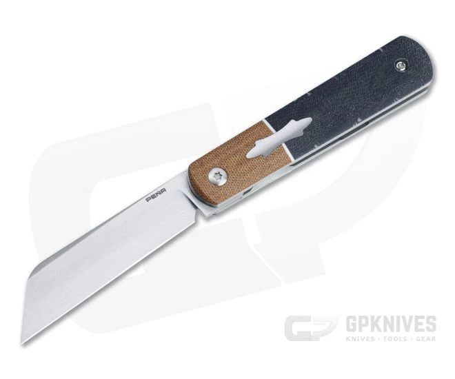 Known for his remarkable fit, finish, and function, Enrique Pena blends traditional and tactical elements in his contemporary designs. This Pena Custom Barlow Front Flipper is an ideal example. The hand rubbed satin finished CPM-154 blade is razor sharp with smooth bearing operation. Titanium liners pair with classic bolstered style delivered in modern Micarta composite handles, natural canvas for the bolsters and custom crosscut blue G-Carta for the covers. The Pena Barlow offers style and performance for the user or collector.