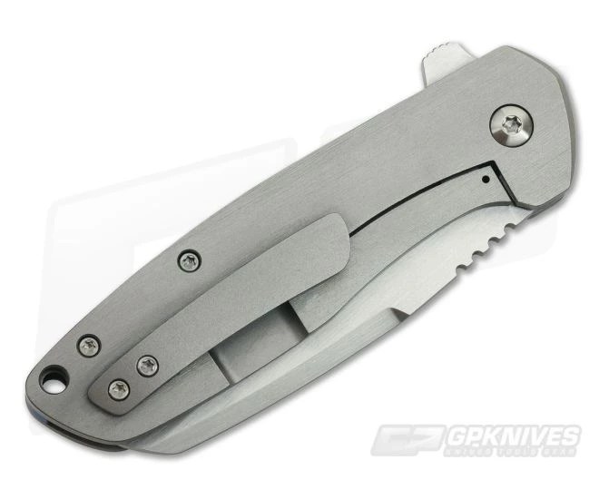 Enrique Pena is known for his remarkable fit, finish and function as well as the blending of the traditional and tactical in his designs. This Peña Custom Bravo Flipper leans heavily to the tactical side of his designs while still retaining every day utility. The razor sharp, hand rubbed satin, CPM-154 blade is a beefy Sheepsfoot pattern and rides smooth and fast on bearings. The full titanium frame lock construction is robust and flawless is execution and operation with a 5-Hole pattern and bark texture finish. Includes a Peña stitched zipper pouch for transport and storage.