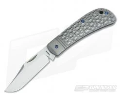 Handle: In keeping with the traditional design the titanium handle is milled with a faux bolster and an organic jigged pattern that feels great in the hand. Assembly is achieved with blue anodized titanium hardware that offers a nice contrast with the blasted finish on the handle. Simple, functional and beautiful, the Peña Lanny’s Clip Point is a sure winner.