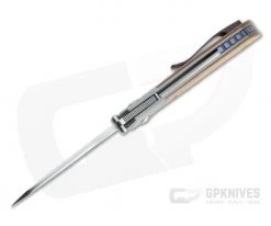 Handle: Two thick titanium liners with integral bolsters are finished in bead blasted matte gray and precision fit to canvas Micarta handle scales for rugged style. The titanium bolster lock is perfect with solid lockup and smooth, one hand operation. Hardware includes satin finished titanium screws, anodized partial back spacer and copper pivot collars. Comes with embroidered Pena zipper pouch.